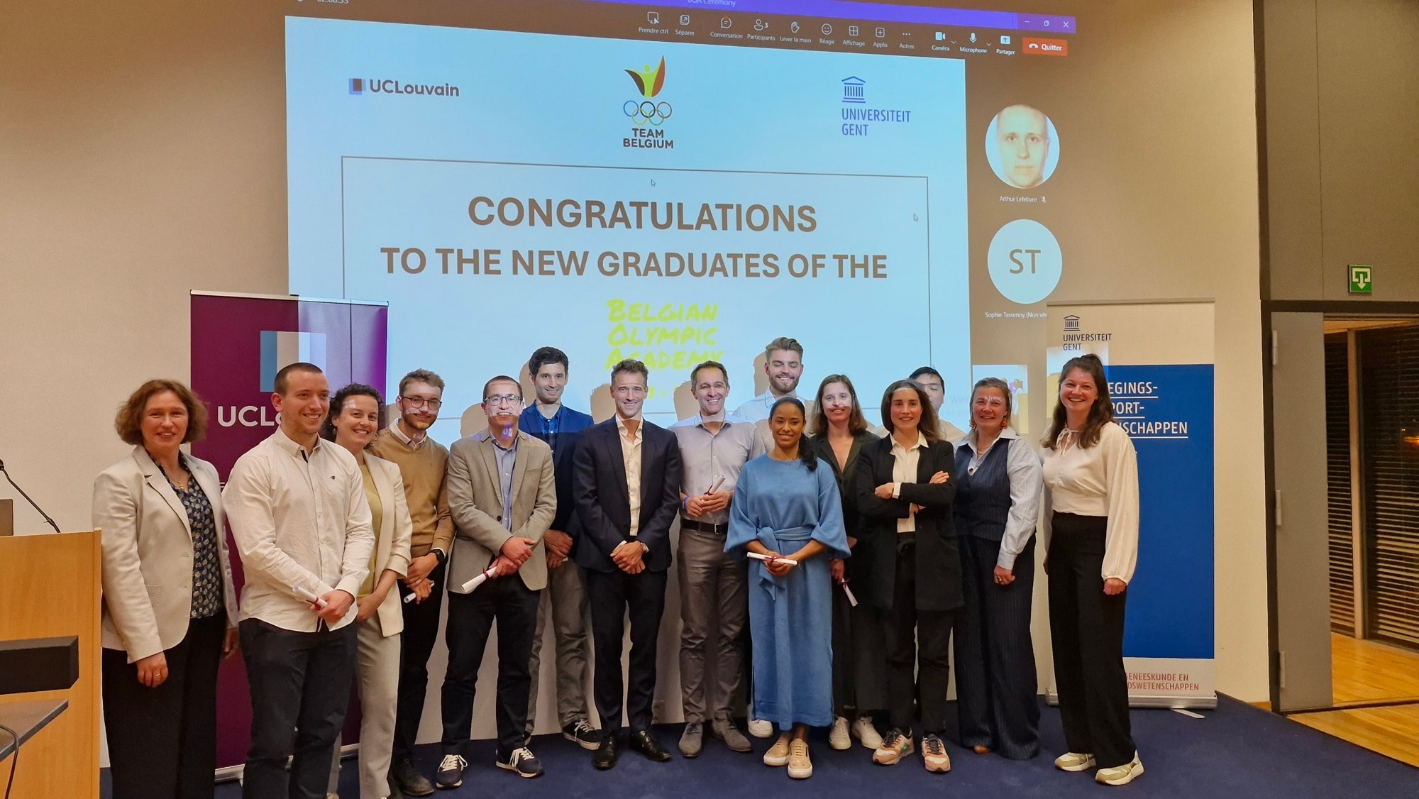 In de Aula Magna van de Universiteit van Louvain-la-Neuve (UCLouvain) mochten op 20 maart, in aanwezigheid van Prof. Géraldine Zeimers van de UCLouvain, Prof. Annick Willem van de UGent, en van BOIC-CEO, Cédric Van Branteghem, 19 van de 23 deelnemers hun diploma ‘Belgian Olympic Academy: Management in sportorganisaties’ in ontvangst nemen.