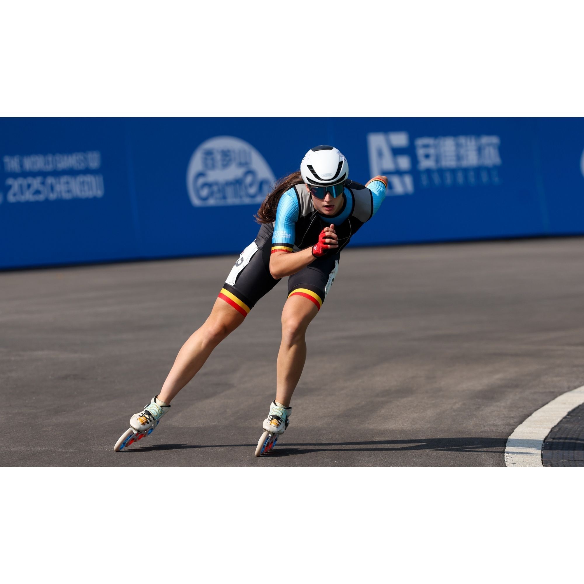 Fran Vanhoutte a conquis la médaille d'argent mardi sur la course de roller d'un tour sur route aux Jeux Mondiaux de Chengdu.