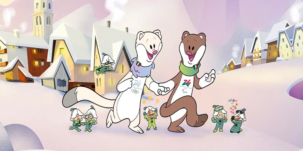 Tina, l’hermine blanche, est la mascotte des Jeux Olympiques, tandis que son frère Milo, l’hermine brune, est la mascotte des Jeux Paralympiques. Leurs noms n'ont pas été choisis au hazard. Tina et Milo font référence aux deux villes hôtes, Milan et Cortina, et symbolisent les normes et les valeurs que l'organisation souhaite promouvoir.