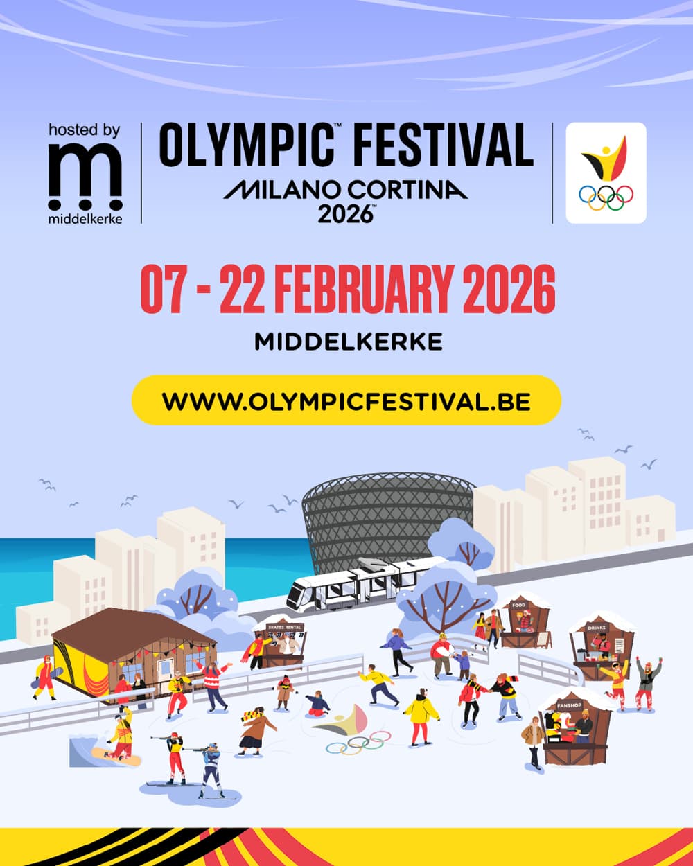 Van 7 tot en met 22 februari wordt Middelkerke voor de tweede keer omgetoverd tot een sportief epicentrum ter gelegenheid van de Olympische Winterspelen van Milano Cortina 2026.